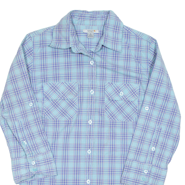 CARHARTT Womens Shirt Blue Check 3/4 Sleeve S