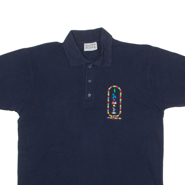CARLA CRAFT Hieroglyph Embroidery Mens Polo Shirt Blue 90s L