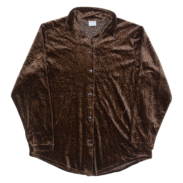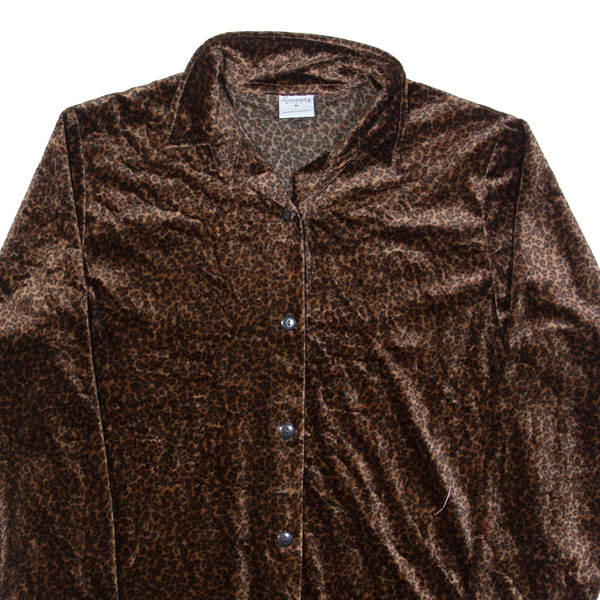 Cascade blues womens shirt brown collared long sleeve animal print m