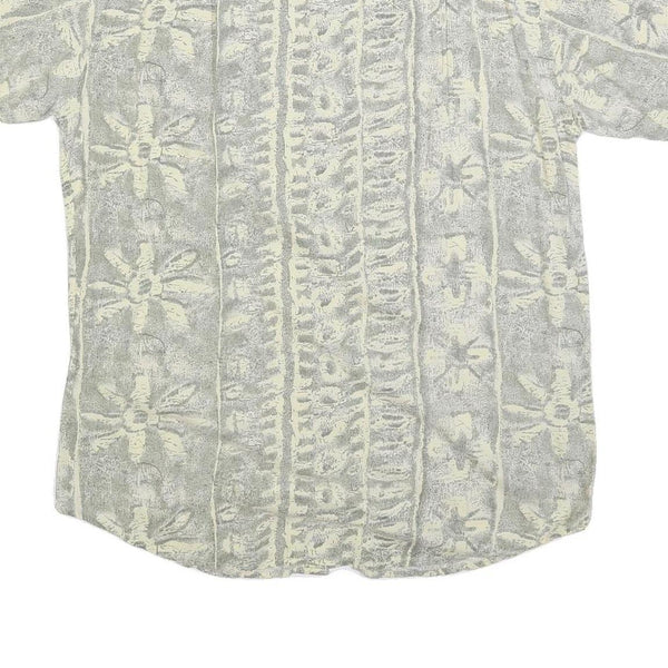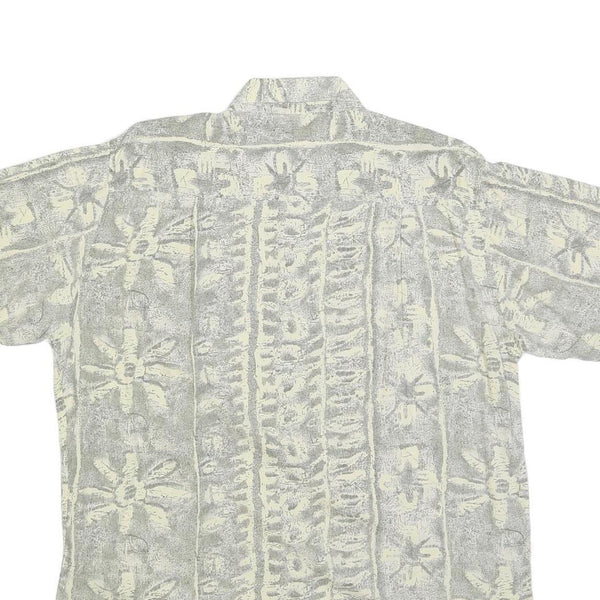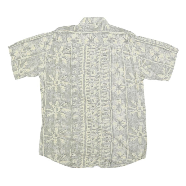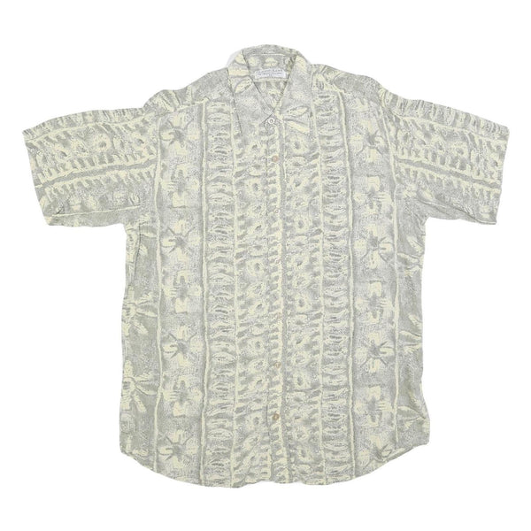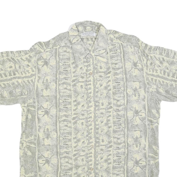CASUAL LINE Mens Cream & Grey Pattern Shirt M Short Sleeve Button Up Casual Wear