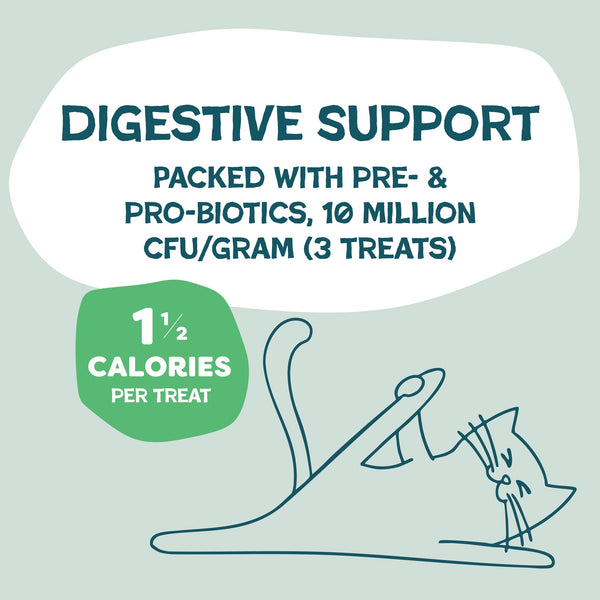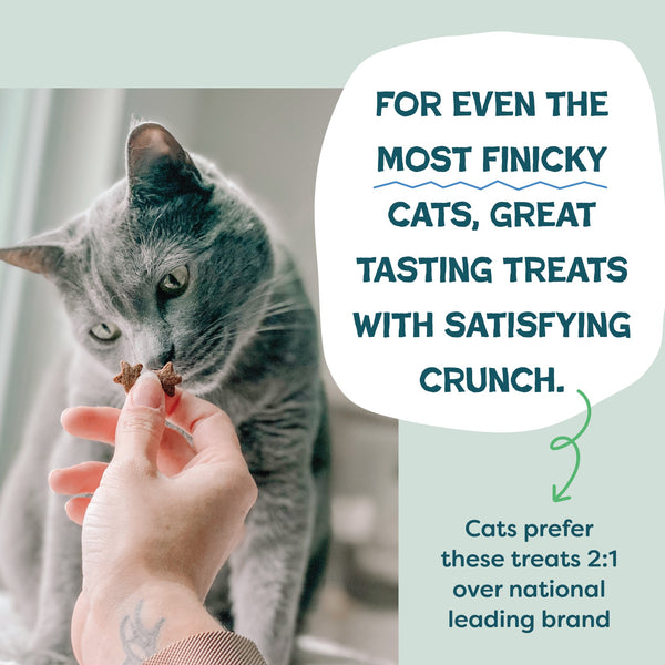 Chillin has never been easier or tastier! Our fresh catnip may cause a little fun followed by a trip to the couch. These crunchy, star-shaped, bite-sized treats are made with chicken, sweet potatoes, catnip along with both pre & probiotics, which helps to support digestion!