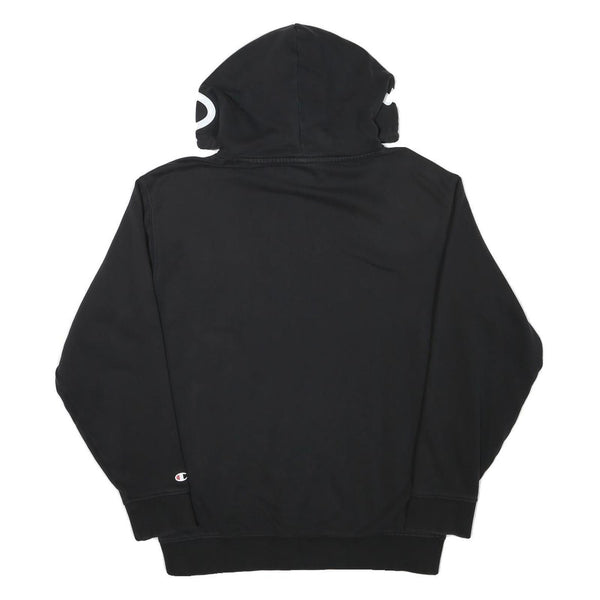 CHAMPION Mens Black Hoodie S Cotton Blend Pullover with Logo Print