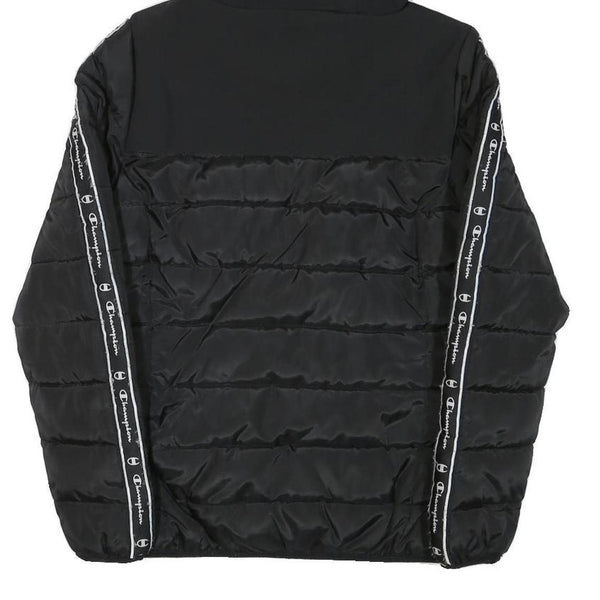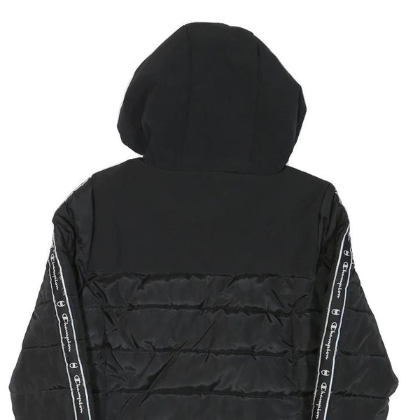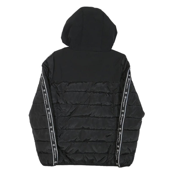 CHAMPION Mens Black Zip Jacket XS Polyester Blend Puffer Logo Tape Hooded