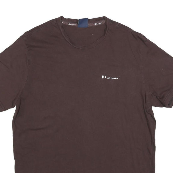 CHAMPION Mens Brown Graphic T-Shirt 2XL Short Sleeve Crew Neck Cotton Blend