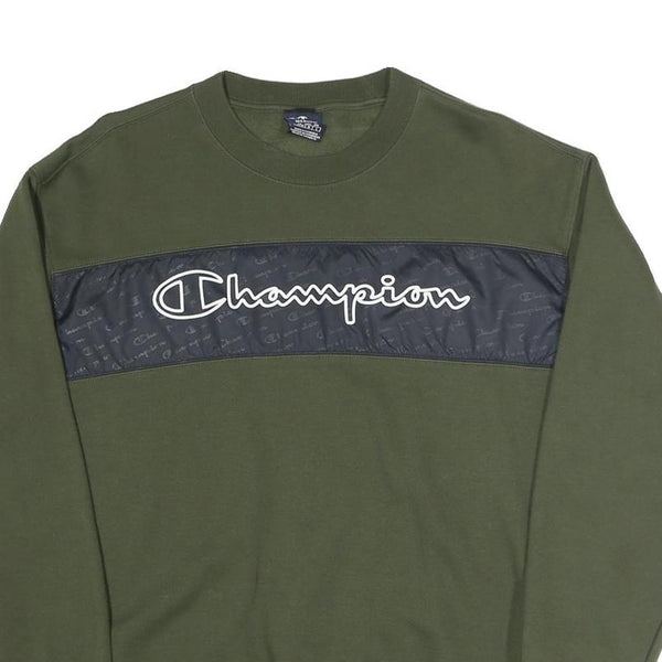 CHAMPION Mens Green Crew Neck M Sweatshirt Cotton Blend Logo Print