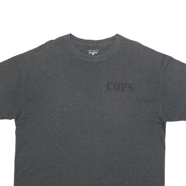 CHAMPION Mens Grey Cops Graphic T-Shirt XL Short Sleeve Crew Neck Casual Wear