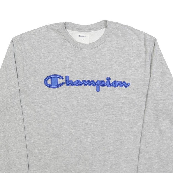 CHAMPION Mens Grey Crew Neck L Sweatshirt Cotton Logo Embroidered Sport