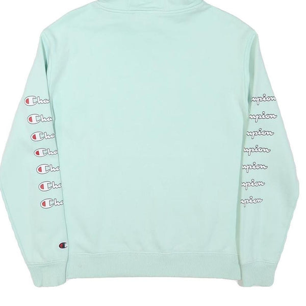 CHAMPION Mens Mint Green Hoodie S Double Sleeve Logo Graphic Pullover Cotton