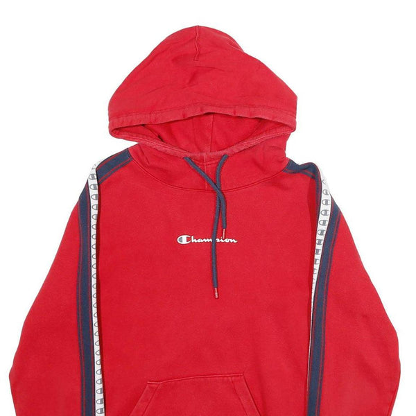 CHAMPION Mens Red Hoodie S Cotton Blend Pullover Logo Tape Stripe