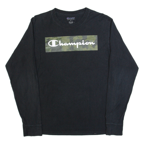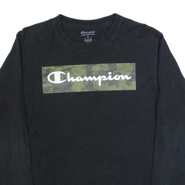 CHAMPION Mens T-Shirt Black Long Sleeve M