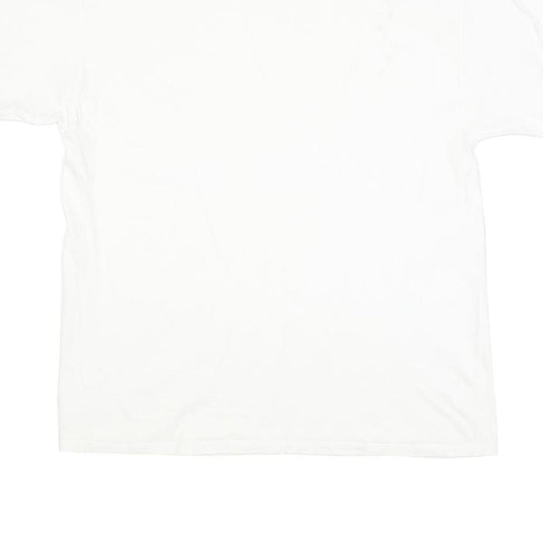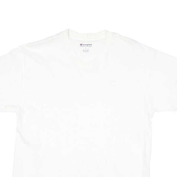 CHAMPION Mens White V-Neck T-Shirt L Cotton Blend Casual Logo Sleeve
