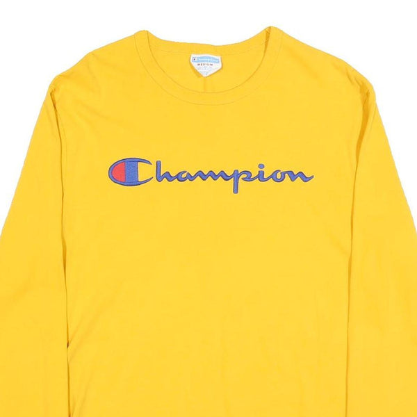 CHAMPION Mens Yellow Long Sleeve Crew Neck Logo T-Shirt M Cotton Blend