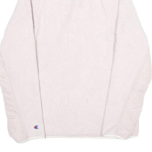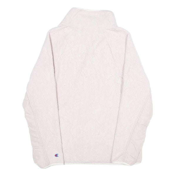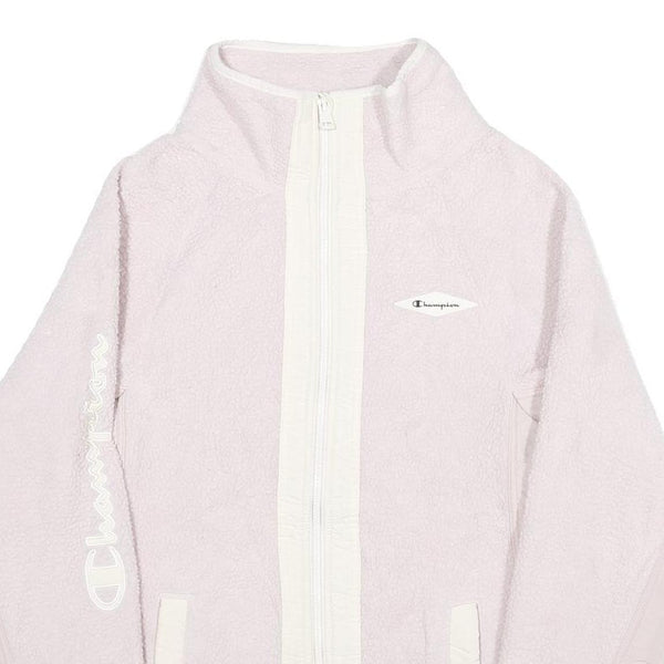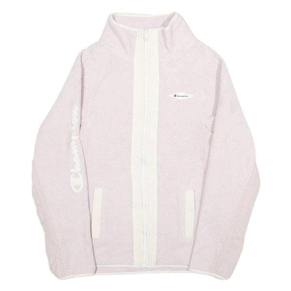 CHAMPION Womens Pink & White Logo Zip Fleece Jacket M Polyester Casual