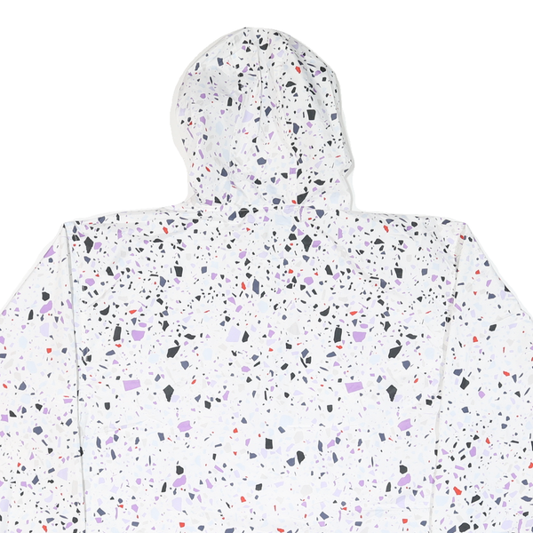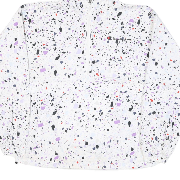 CHAMPION Womens White & Black Graphic Print Hooded Nylon Jacket M Zip Patterned