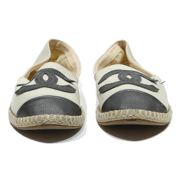 CHANEL Espadrille Womens Shoes Leather White & Black UK 3 Flats Casual Luxury
