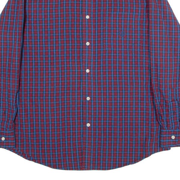 CHAPS Easy Care Mens Shirt Blue 90s Check Long Sleeve M