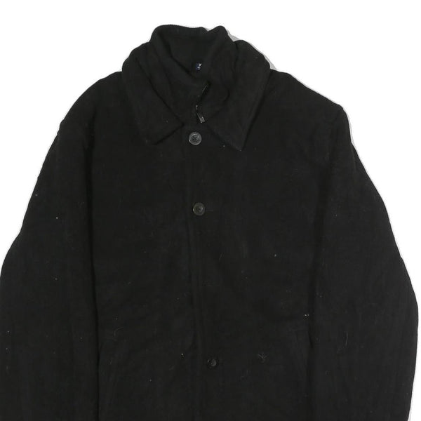 This CHAPS mens jacket comes in a solid black colour and features a button collar with a zip closure concealed underneath for added style and warmth. The jacket is fully cotton, providing a soft and comfortable feel suitable for everyday wear. It offers a classic fit with long sleeves and a regular length, making it versatile for layering over casual or smart outfits.