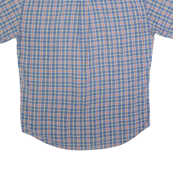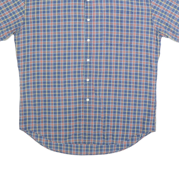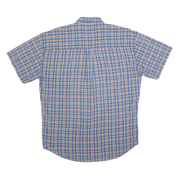 CHAPS Mens Blue Check Shirt L Cotton Casual Short Sleeve Button Down