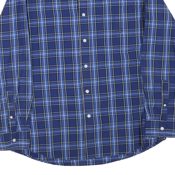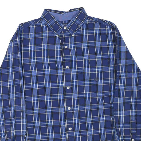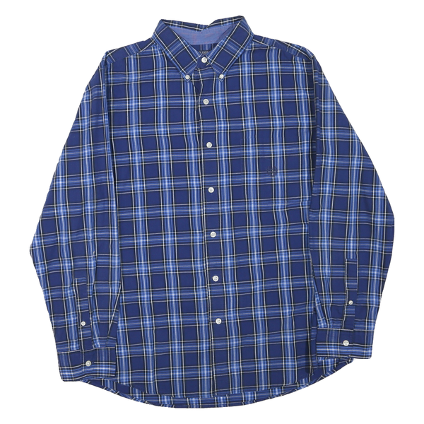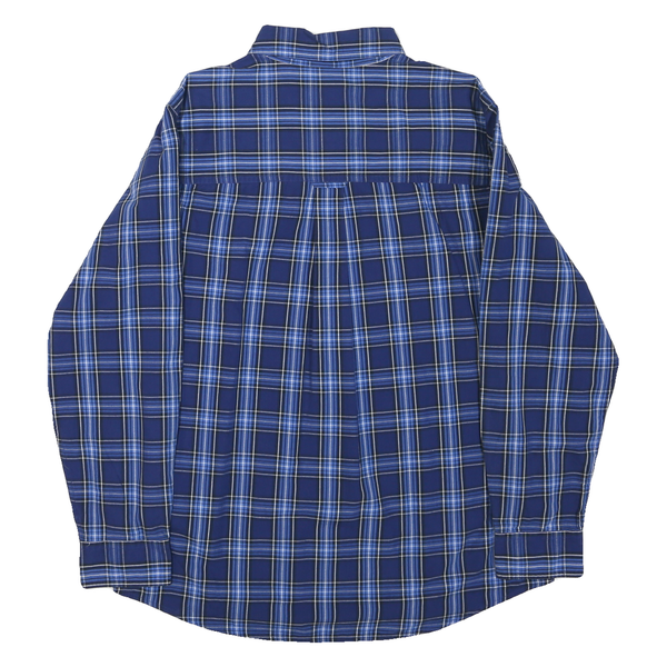 CHAPS Mens Blue Plaid Shirt L Button Down Cotton Blend Casual Classic