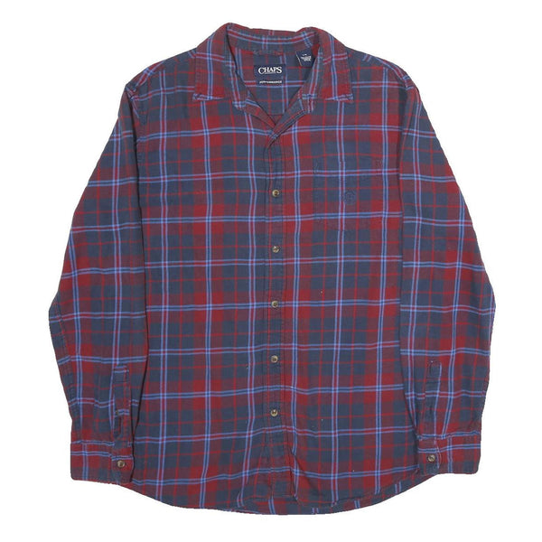 CHAPS Mens Blue & Red Check Shirt L Cotton Long Sleeve Button Front