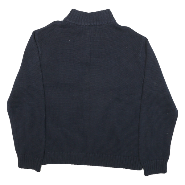 Chaps mens blue & white plain pullover jumper crew neck cable knit xl cotton