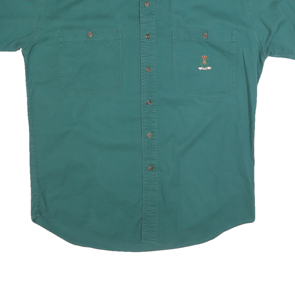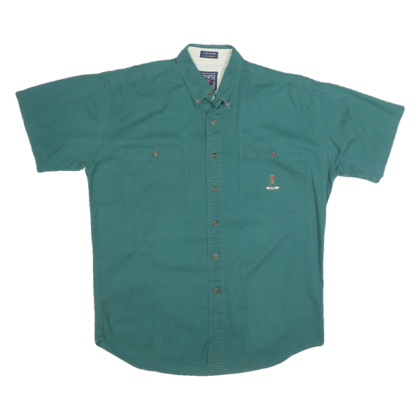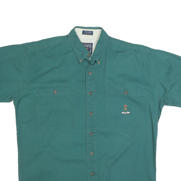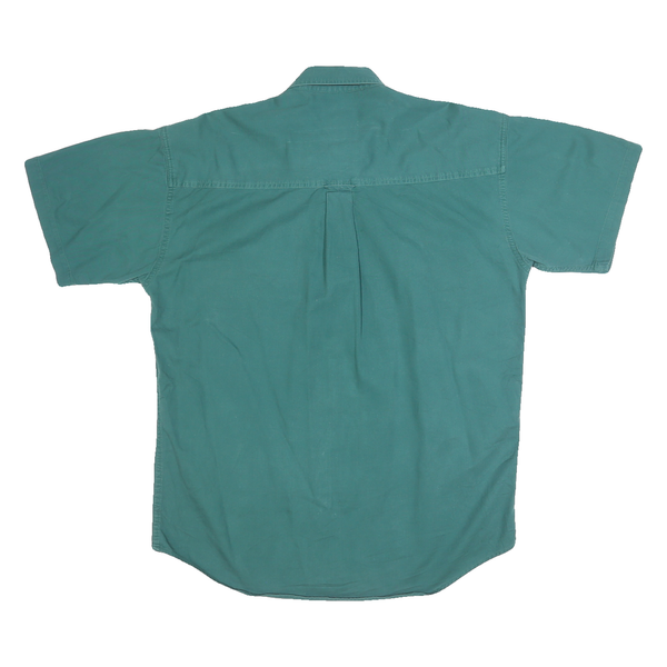 Home CHAPS Mens Green Cotton Button-Down Shirt M Classic Short Sleeve Pocket