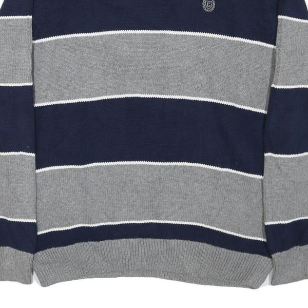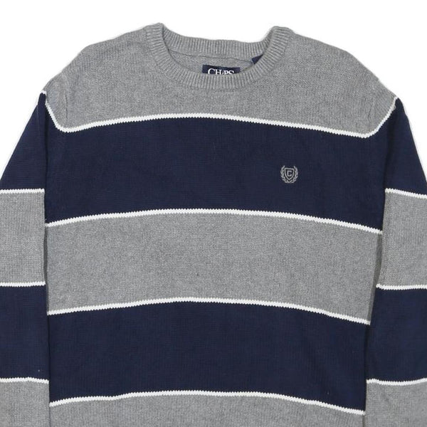 Chaps mens grey & blue patterned cotton blend jumper crew neck chunky knit m