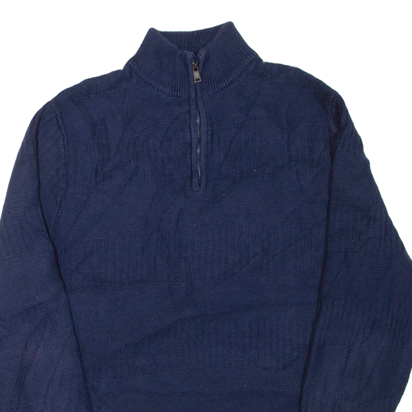 CHAPS Mens Jumper Blue 1/4 Zip Tight Knit M