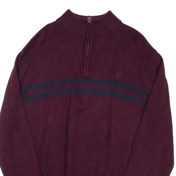 CHAPS Mens Jumper Maroon 1/4 Zip Tight Knit XL