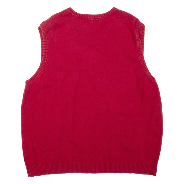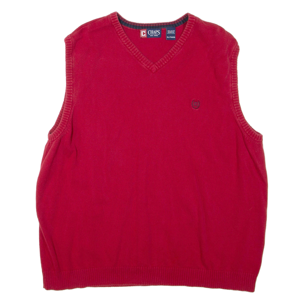 CHAPS Mens Jumper Red V-Neck Tight Knit Sleeveless XL
