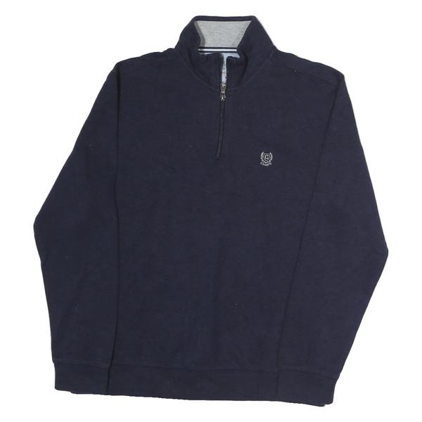 CHAPS Mens Navy Zip Neck Sweatshirt M Embroidered Logo Cotton Pullover