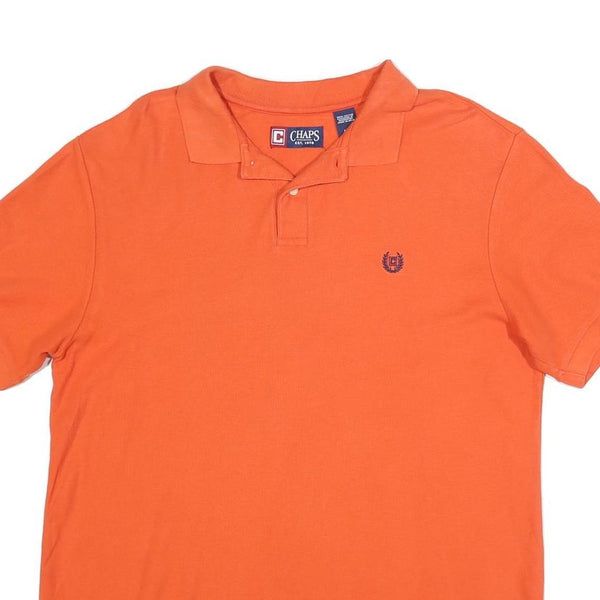 CHAPS Mens Orange Short Sleeve Plain L Polo Shirt Cotton Blend Casual
