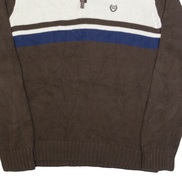 CHAPS Mens Patterned Jumper Brown 1/4 Zip Tight Knit L