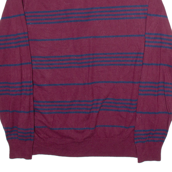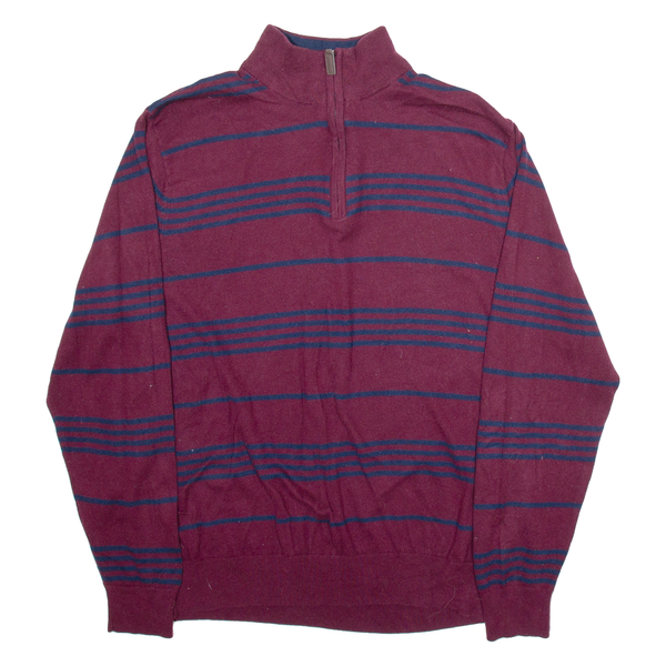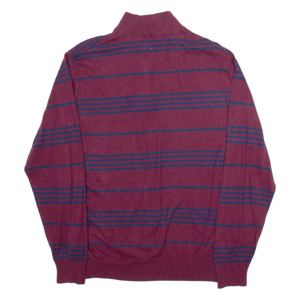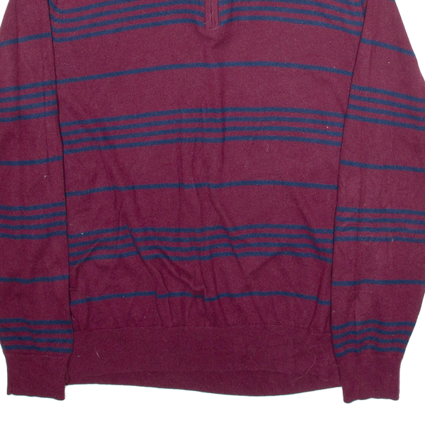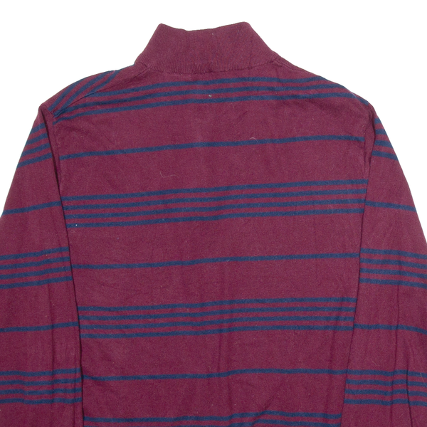 CHAPS Mens Patterned Jumper Maroon Striped 1/4 Zip Tight Knit L