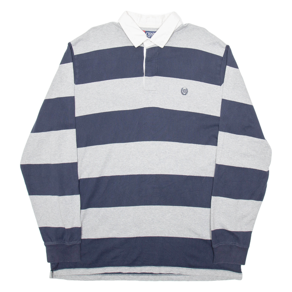 CHAPS Mens Polo Shirt Grey Striped Long Sleeve L