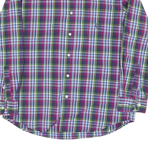 CHAPS Mens Purple & Green Plaid Cotton Blend Shirt M Button-Down Collar Long