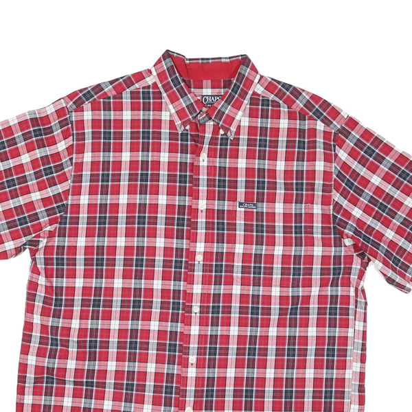 CHAPS RALPH LAUREN Mens Red & Navy Check Shirt L Short Sleeve Button Down Cotton