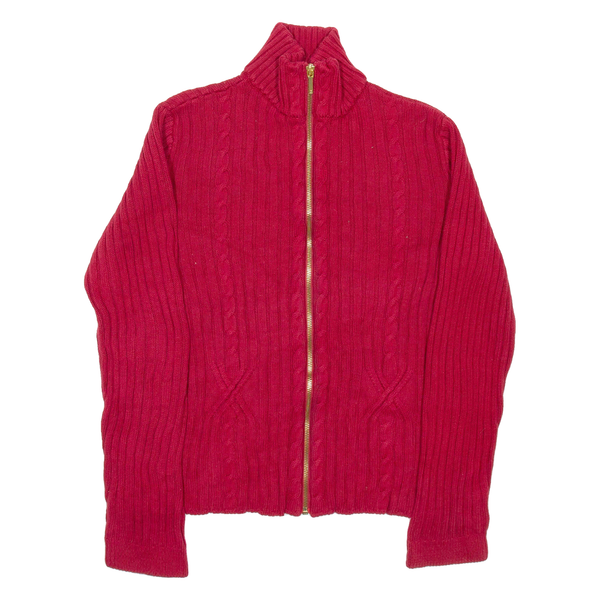 CHAPS Womens Cardigan Red 1/2 Zip Cable Knit L