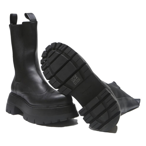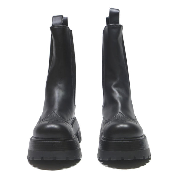 The boots showcase detailed topstitching on the upper and a chunky platform lug sole, enhancing both flair and comfort. Ideal for adding edge to casual or smart-casual outfits, these boots combine fashion-forward style with reliable fit for everyday wear.