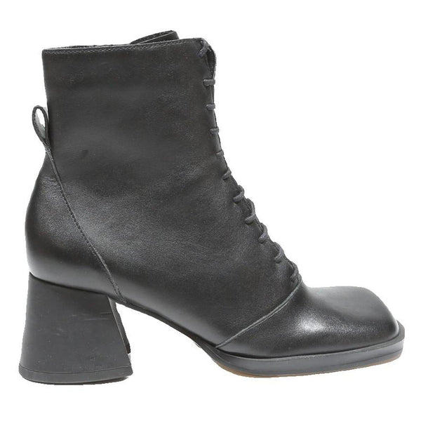 These womens ankle boots by CHARLES & KEITH are crafted from smooth black leather with a sleek lace-up front design. The stylish block heel and rounded toe combine fashion with comfort, perfect for everyday or dressier occasions.