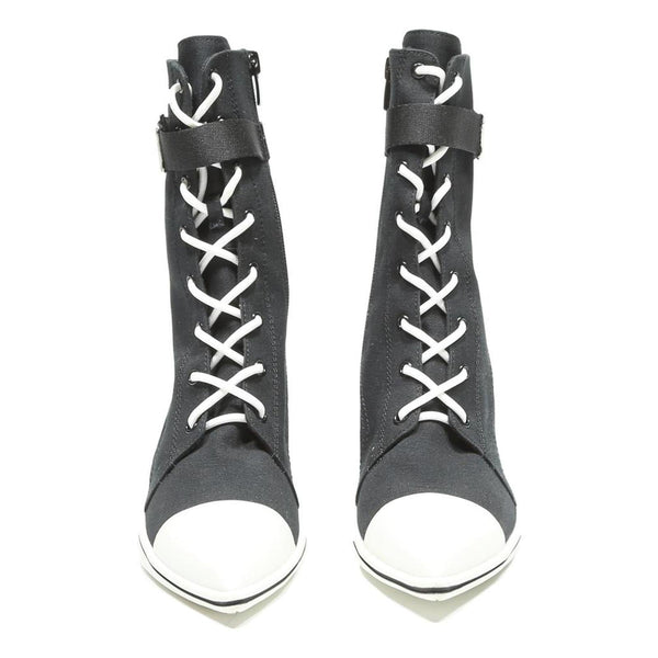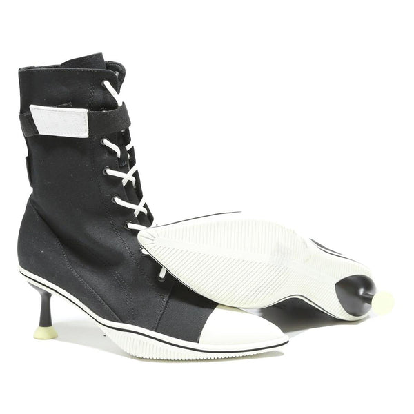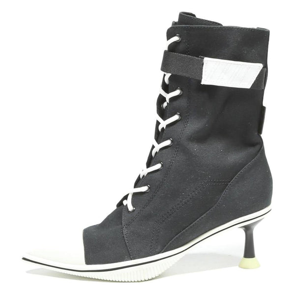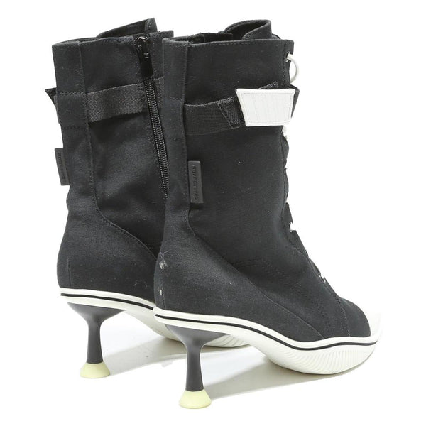 Made from quality canvas, these boots offer a comfortable yet supportive fit with a slender kitten heel that provides elegance without sacrificing wearability. The boots have a modern sporty-chic style, perfect for elevating casual or streetwear outfits.