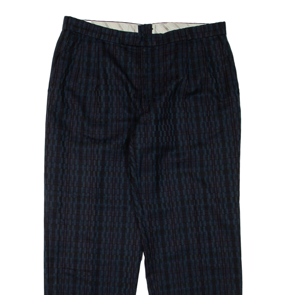 Check Mens Trousers Green Regular Tapered W34 L30