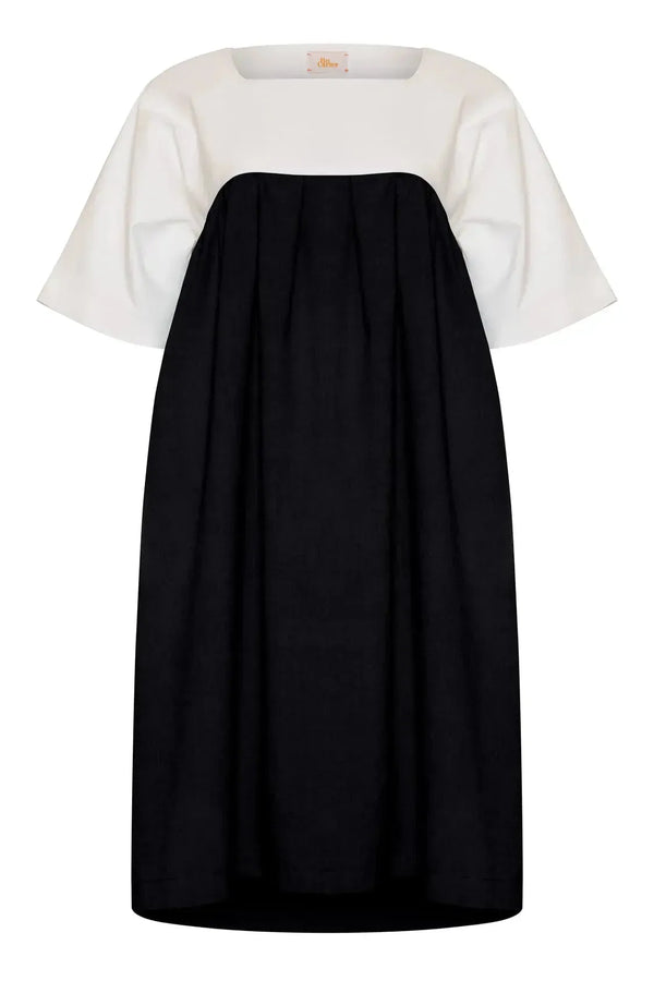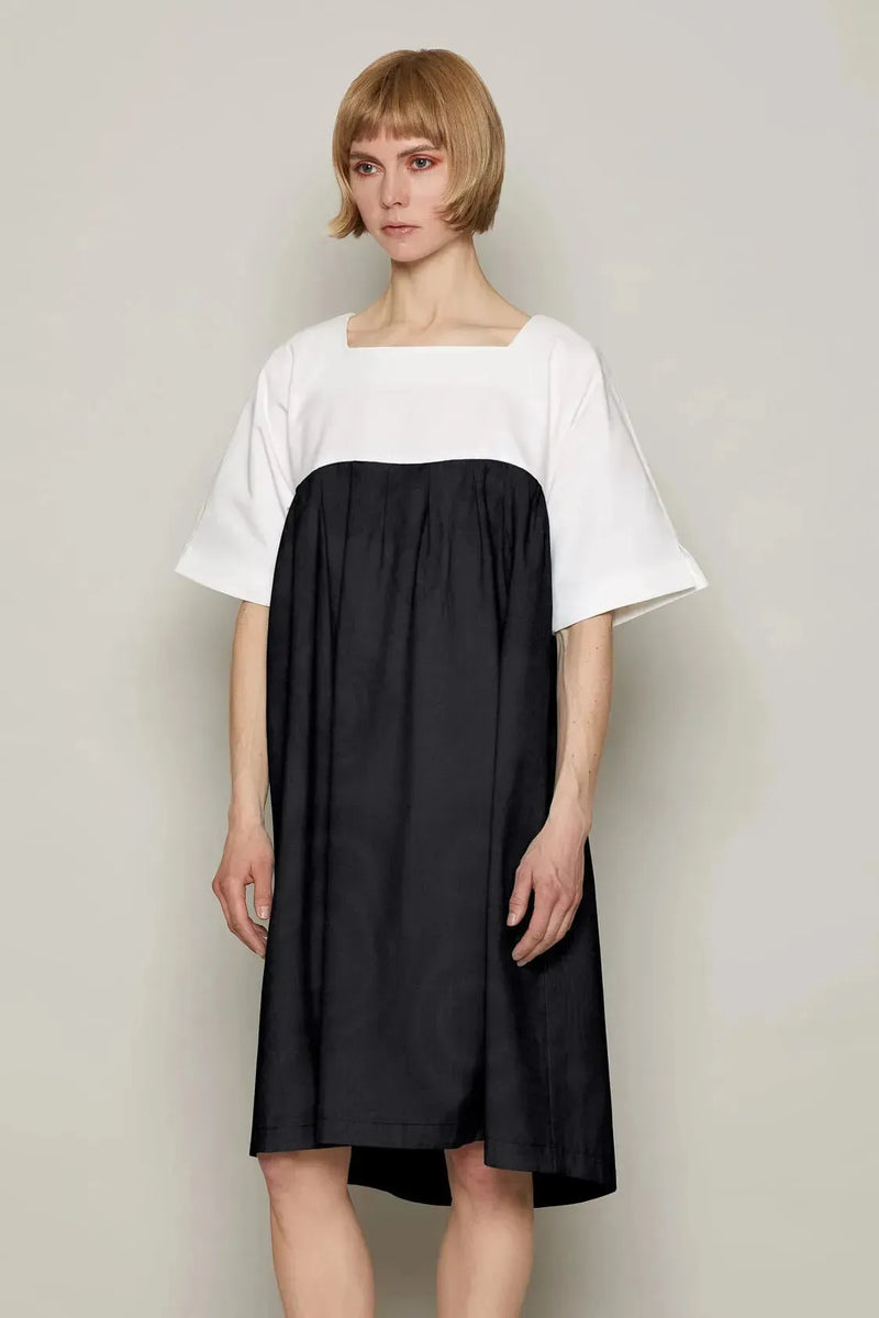 The relaxed fit of the Cher Ami dress makes it a versatile addition to any wardrobe. Wear it casually or dress it up for a true day-to-night look. Made from 100% certified organic cotton, this floaty smock dress features a high square neckline and small slits in the sleeves for added volume.
