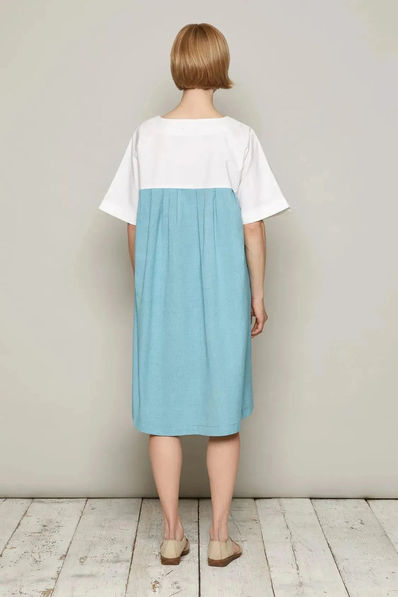 The relaxed fit of the Cher Ami dress makes it a versatile addition to any wardrobe. Wear it casually or dress it up for a true day-to-night look. Made from 100% certified organic cotton, this floaty smock dress features a high square neckline and small slits in the sleeves for added volume.