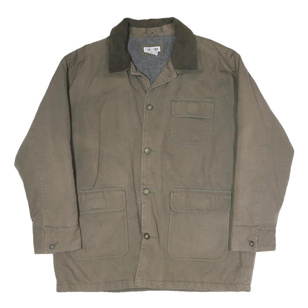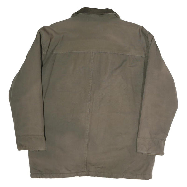 CHEROKEE Mens Green Cotton Jacket L Button Plain Casual Classic Three Pocket