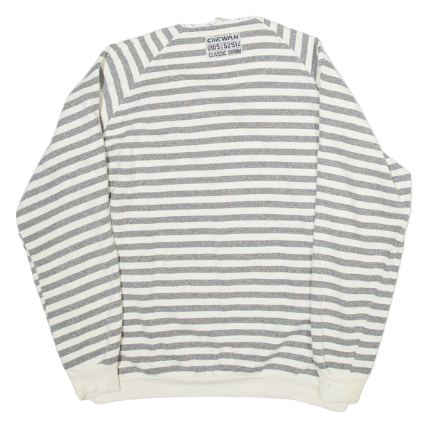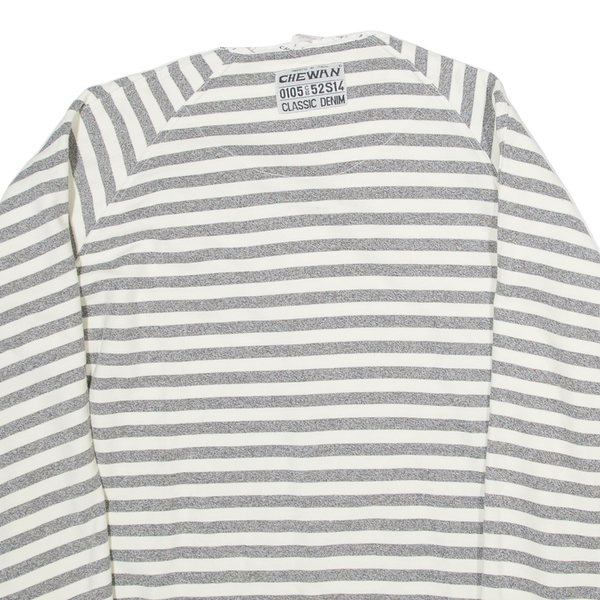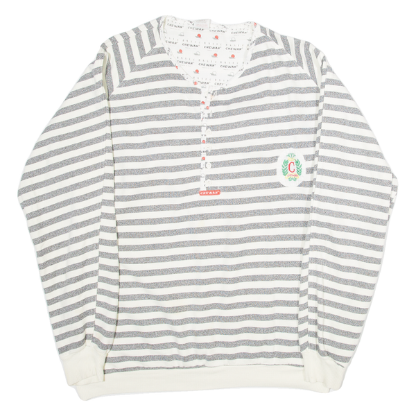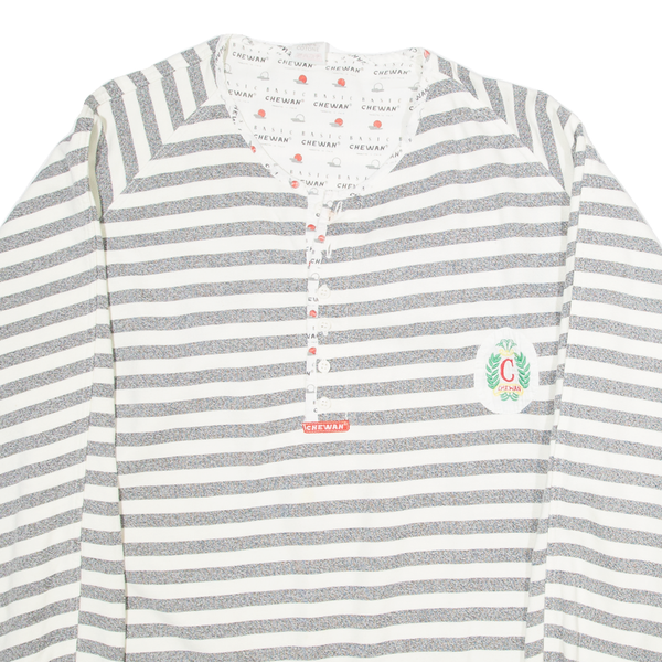 CHEWAN Striped Womens Sweatshirt Grey Button Neck XL