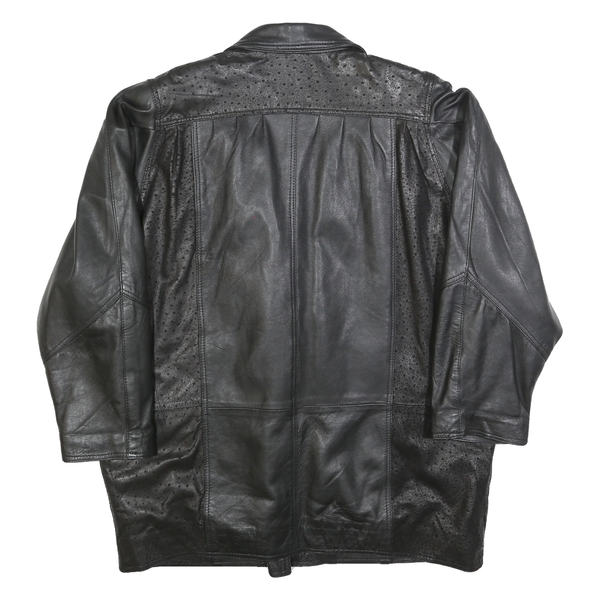 CHI NENSIS Womens Black Leather Button Jacket L Perforated Pattern Long Sleeve