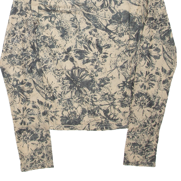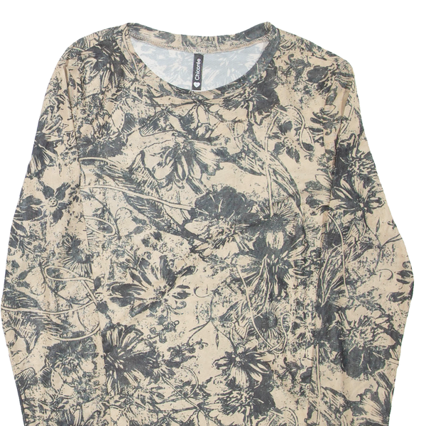 CHICOREE Sheer Womens Printed Top Beige Long Sleeve Floral S