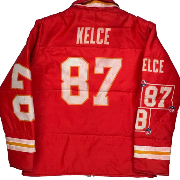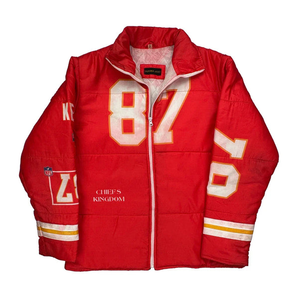 Chief'S Kingdom Graphic Puffer Jacket With Number 87 And Kelce Text
