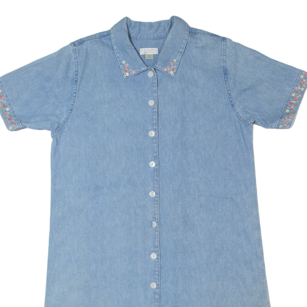 CHRISTOPHER & BANKS Oversized Womens Shirt Dress Blue Denim 90s Midi M